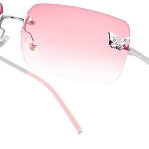 RECTANGULAR Y2K SUNGLASSES: They are not only stylish but also curved to fit greatly on your face. The frameless rectangular design enhances the beauty of the glasses, the metallic glasses legs and shiny little butterflies on the lens add a y2k touch