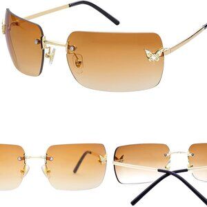 Product details Origin Imported About this item RECTANGULAR Y2K SUNGLASSES: They are not only stylish but also curved to fit greatly on your face. The frameless rectangular design enhances the beauty of the glasses, the metallic glasses legs and shiny little butterflies on the lens add a y2k touch HIGH-DE-FINITION UV400 LENSES: Our sunglasses go beyond reducing overall brightness, they feature lenses that provide