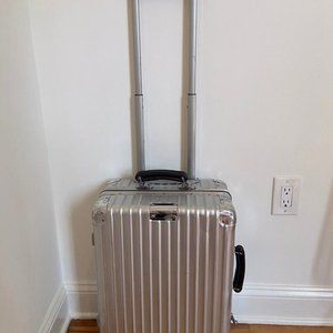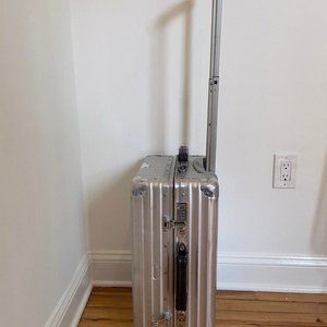 Multi-wheel aluminum Rimowa luggage. Holds 9.5 gallons.