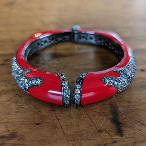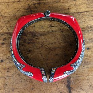 Rina Limor Red Enamel Bracelet 925 Sterling Silver Clamper Bangle Cuff Signed