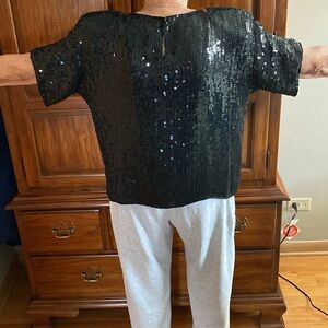 Rina Z Womens XL Silk Black Sequins Short Sleeve Blouse
