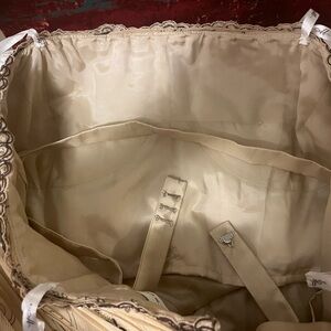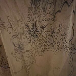 There are a few spots in the gauze & chiffon skirt that have been mended from a heel going thru the gauze layer, these repairs are not noticeable