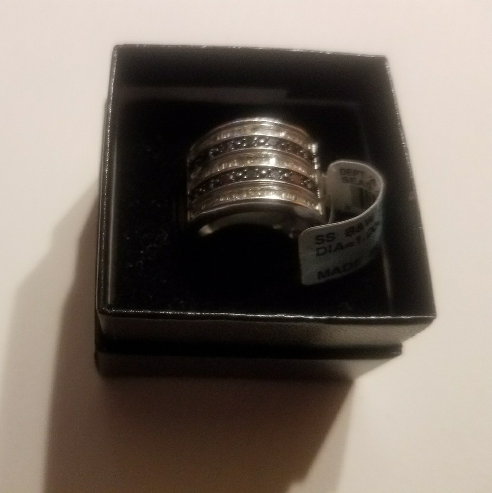 Silver Black and White Diamond Ring