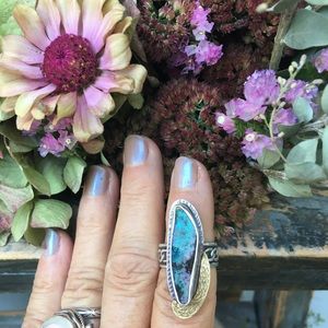 Sweet little Turquoise Ring from India with larger granulation metal unknown