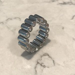 Cute ring with clear stones on both sides. Wore it once. Do not have the original box.