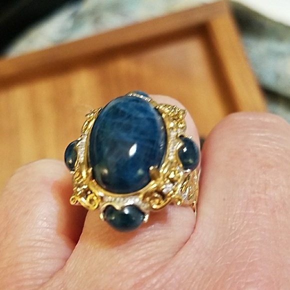 Sodalite , ring is solid silver the gold accent is gold over silver .