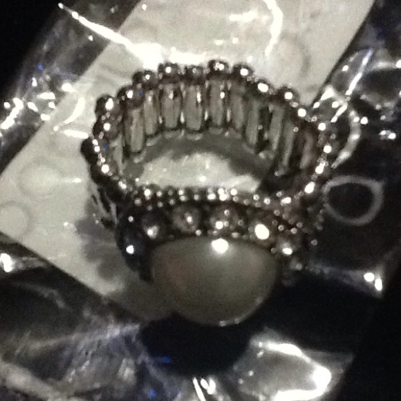 Nice silver ring with pearl design with stones around it nice