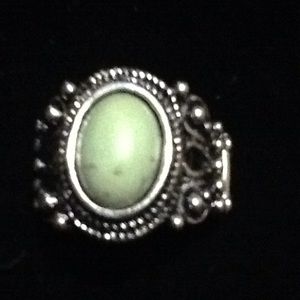 Nice silver ring with with green stone design lovely adjustable
