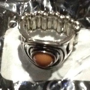 Beautiful silver ring oval brown stone in middle nice look casual adjustable