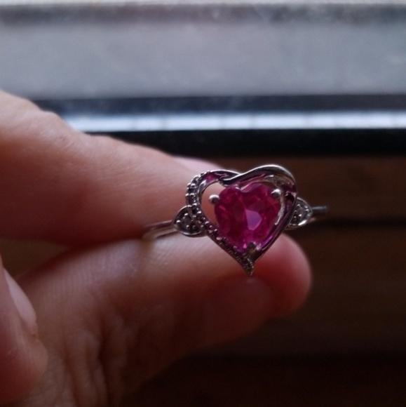 Heart with pink stone sterling silver. I also have a necklace that matches it. It is June's birthstone. Very beautiful in person. The diamonds on the sides are real.