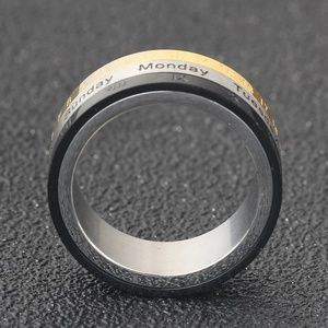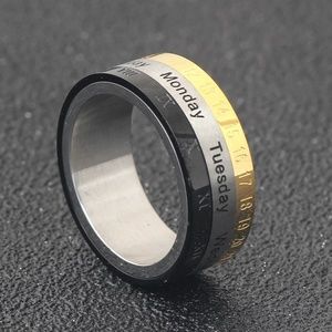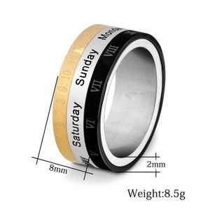 Titanium Steel Band Rotatable Ring Calendar Week Roman Arabic Numeral Word Letter Men's Silver Gold Black