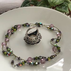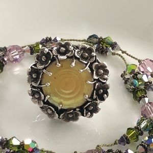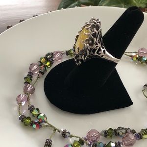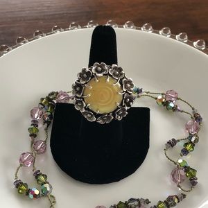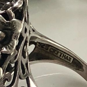 Gorgeous mother pearl 925 Sterling silver ring size 8 Beautiful detail with roses around the mother pearl hard to find and very cute