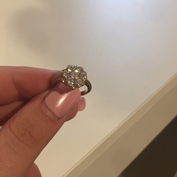 Beautiful ring. Flower shape. Filled with shiny diamonds (fake). Looks very real.