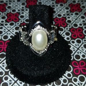 Gorgeous silver, oval shaped center pearl ring, w/ a stretch band. %100 Lead and Nickel free.!