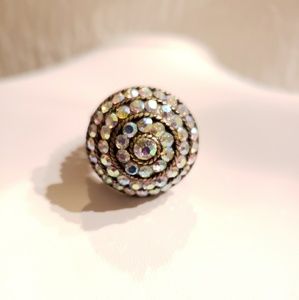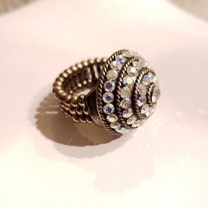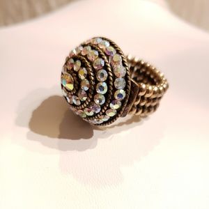Costume Bronze Tone Metal, Dome, Pastel Rainbow Rhinestone Stretch Ring