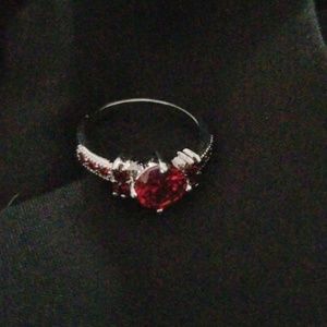 Silver tone size 9 ring with red stones...nwot