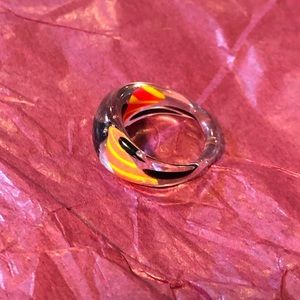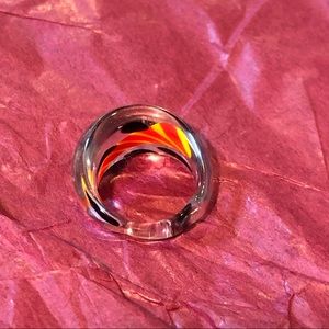 Artsy & Fun! This joyful fun ring is clear, orange, and black. Hand made by a local artist. In good/perfect condition. Hardly worn. Approximately size 6.