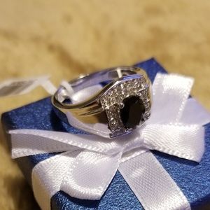 Thai Black Spinel, White CZ Platinum Bond Brass Men's Ring 1.61 ctw.