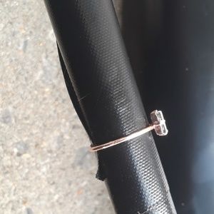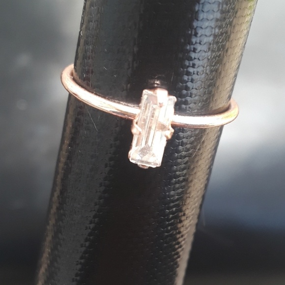 Delicate gold band with rectagular, vertical, baguette cut.