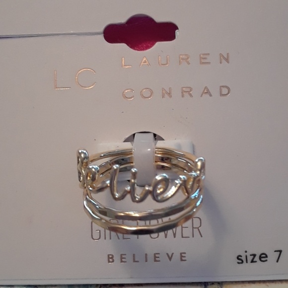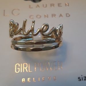 Gold tone 3 rings with "believe" on one of them. Size 7