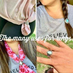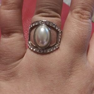 Streatchable ring with rhinestones and a pearl. Fits up to a size 9 and can be used in other ways as shown in the second picture.
