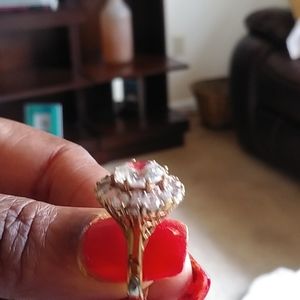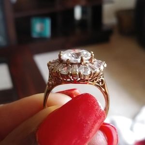 @prisci90 hello thanks for looking sorry for the delayed response the center stone is approx 1/2 inch. Sorry I do not know the metal it is not listed.