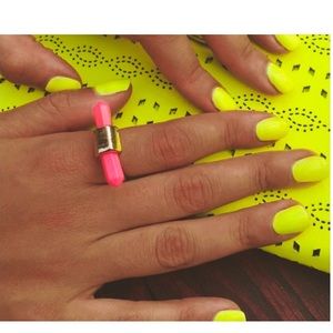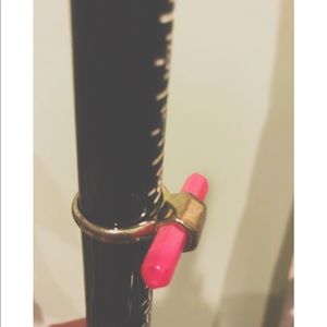 Top Shop ring with two horizontal pink faux crystals featured on each side. Minor signs of wear