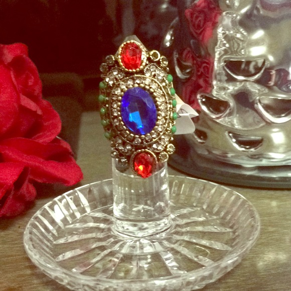 Goldtone with blue red green and white rhinestones