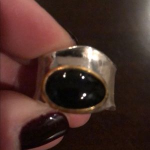 sterling Silver black onyx ring with gold bezel set. Size 7