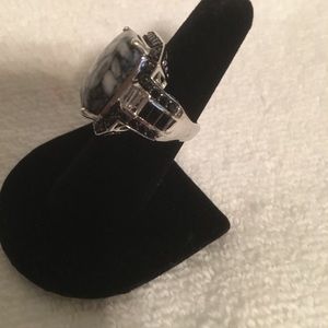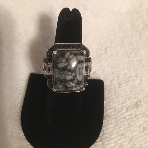 Black and white Austrian pinolith cocktail ring Silver 925 nickel free black spinel stones on the edge