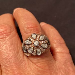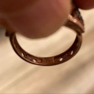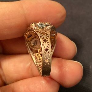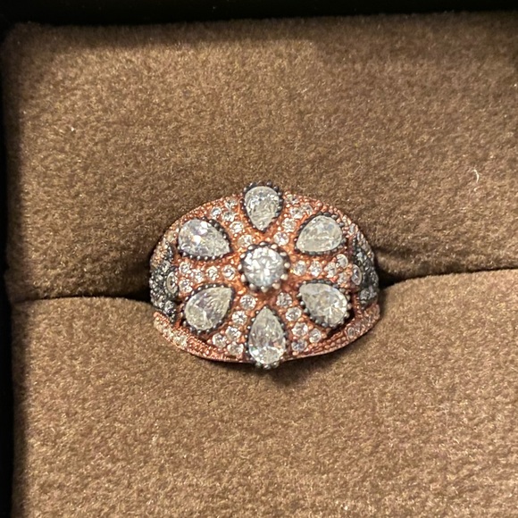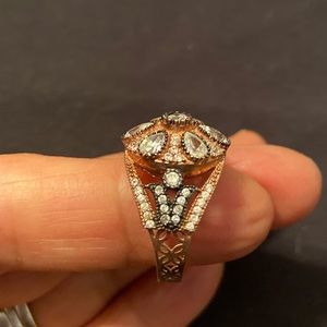 Beautiful rose gold over sterling silver and CZ ring with all filigree work around , stamped 925 , new never used it , come with box