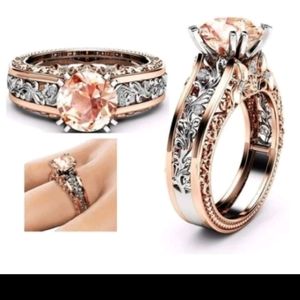 10mm Round cut 18k Rose Gold filled Pink stone ring Size 8