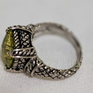 Silver plated emerald green stone. Size 7