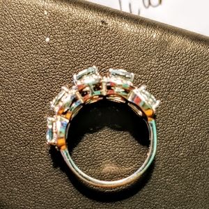 Aqua Marine and diamond ring. Sterling silver band. 2.25 ctw. Aqua Marines. .58 diamonds. Never worn