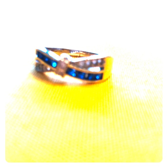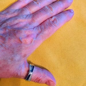 Silver tone ring with blue and clear stones. Can be worn by men or women. Wear it as a index or thumb ring
