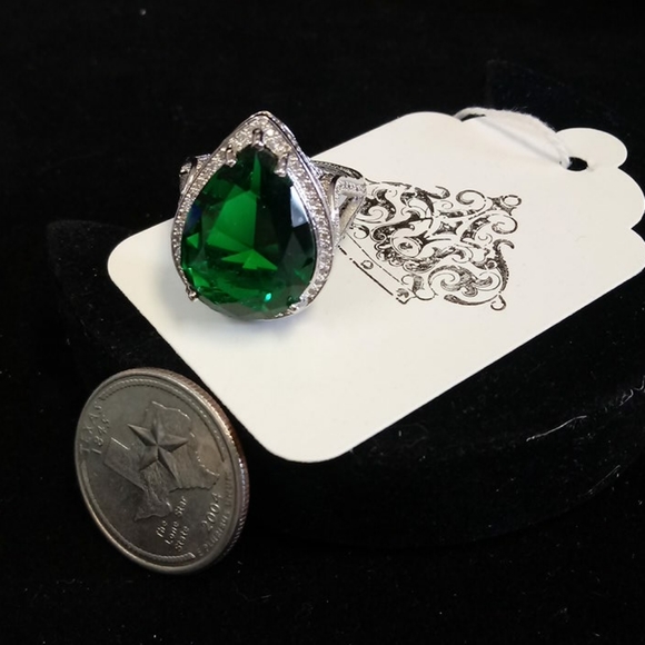 Lab created tear drop emerald w/white sapphires around stone and shank cocktail ring it's big
