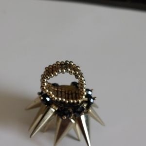Muted gold tone with black crystals...Stretch band with pointed spheres. Excellent condition