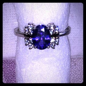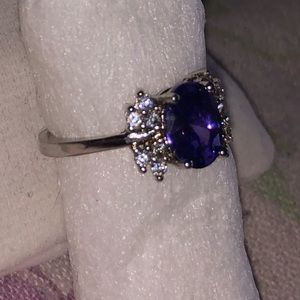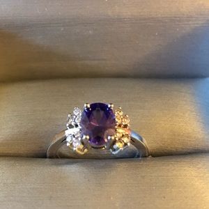 White Gold Plated Purple Garnet/Diamond Cluster Ring.