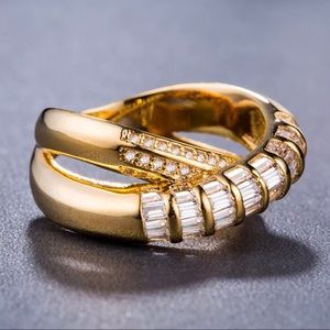 Completely Gorgeous solid 926 purity Sterling Silver 18K yellow gold filled with emerald cut AAAAA CZ. Size 8.