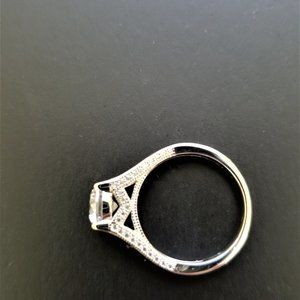 Clear Lassaire stones accent the band and sides of the setting