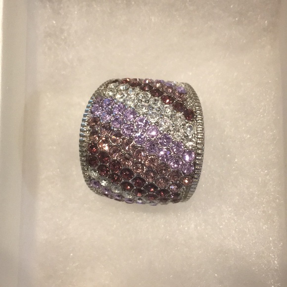Park Lane Size 7 Silver Lavender Burgundy Never worn Sparkly Mauve Ring Thick band Purple Silver Rhinestones