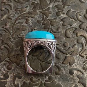 Turquoise sterling silver ring. Unique design. Does have a couple marks on the bottom of ring