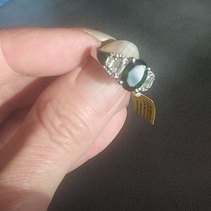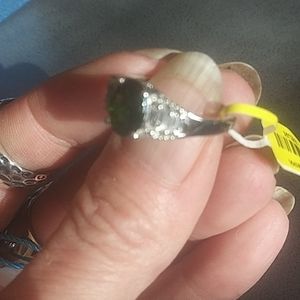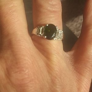 Russian diopside ring in sterling silver Platinum overlay with white topaz baguette accent size 7 Russian diopside carat weight 1.85 topaz carat weight .65