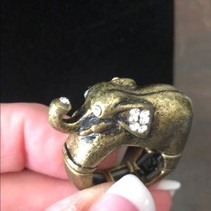 Metallic elephant ring with crystals from Chico’s. Band is elastic, fits many size fingers!
