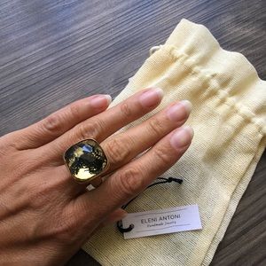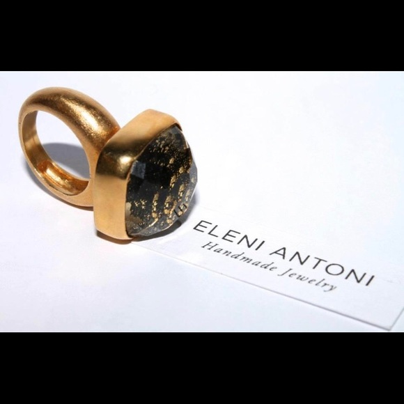 Unique handmade by Greek artists Eleni and Antoni gold ring. Gold with gold flakes inside. Limited edition. Hurry only one available...you won’t find this ring anywhere else. This is slightly bigger size finger ring. Great price great occasion! Don’t miss it!
