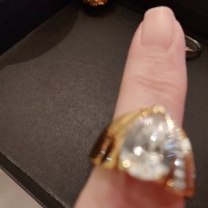 Beautiful gold tone with a fabulouscenter stone a nd little details on the side