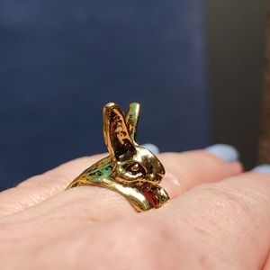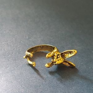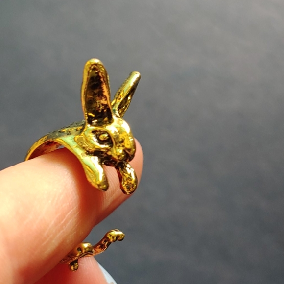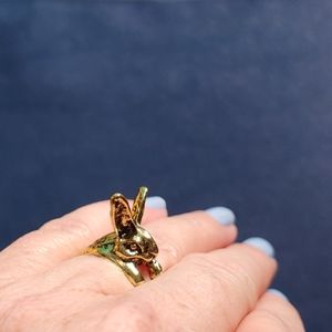 Adorable Bunny Ring. Sweet little bunny that wraps your finger. This is costume jewelry. Brass like finish. Cute details all the way around. Adjustable size.
