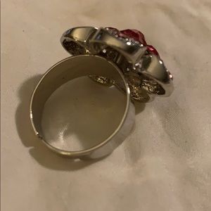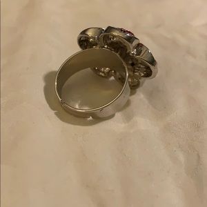 Flower silver ring color pink