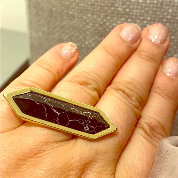 Gold ring with black stone.