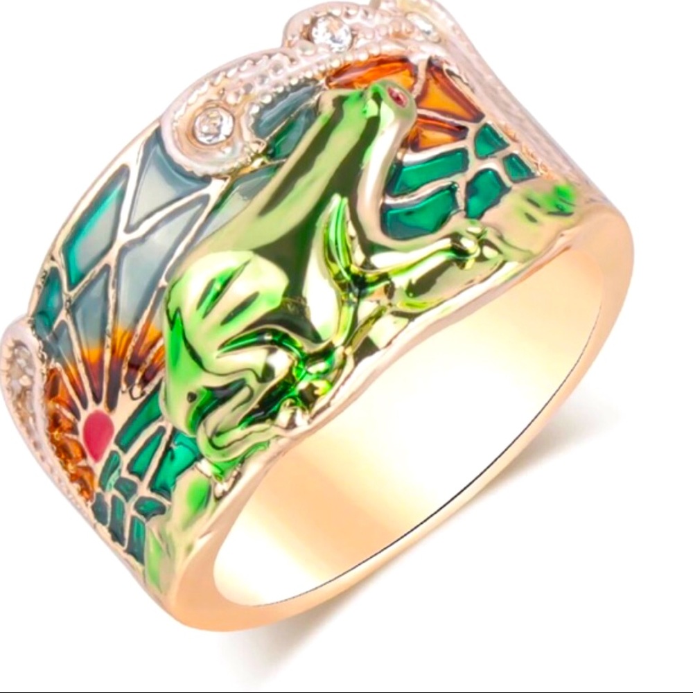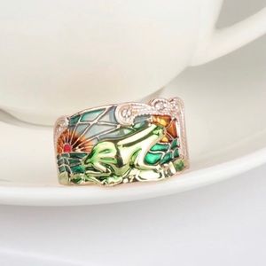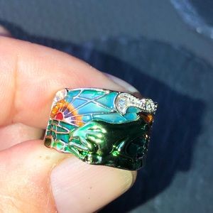 Gorgeous solid 925 purity Sterling Silver, 18K Gold filled, natural Austrian Crystal, Enamel Wide Ring. Size: 8
